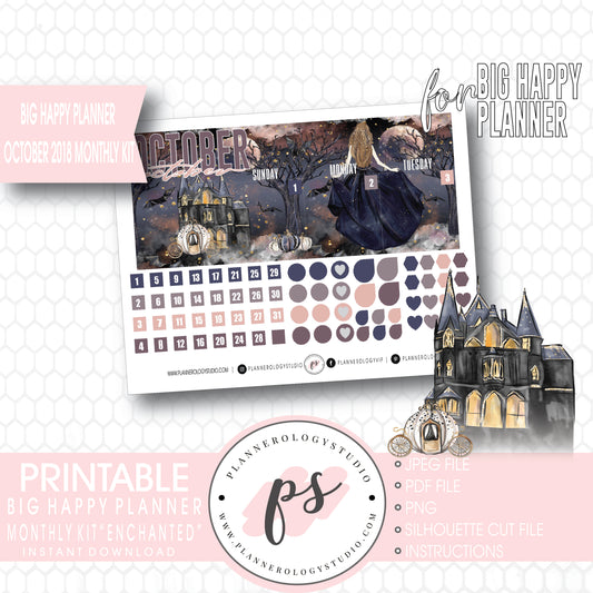 Enchanted Halloween October 2018 Monthly View Kit Digital Printable Planner Stickers (for use with Big Happy Planner)