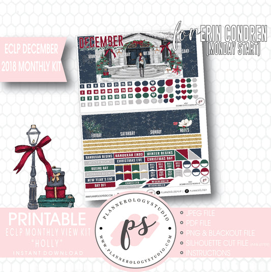 Holly Christmas December Monthly View Kit Digital Printable Planner Stickers (for Standard A5 Wide Monthly 1.6" Width Date Boxes) (Undated and Monday Start)