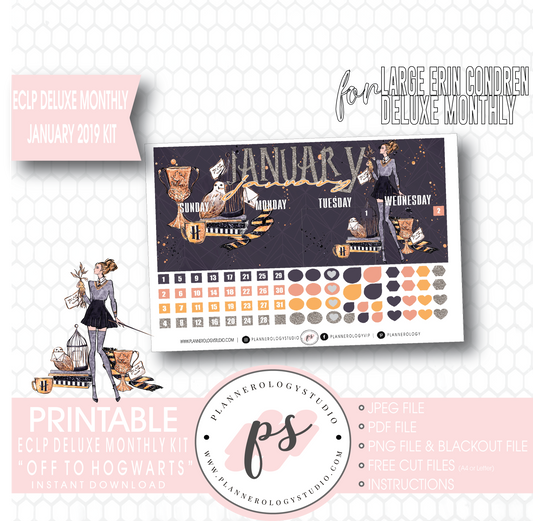 Off to Hogwarts January 2019 Monthly View Kit Digital Printable Planner Stickers (for use with Erin Condren Large Deluxe Monthly Planner)