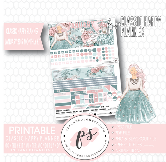 Winter Wonderland January 2019 Monthly View Kit Digital Printable Planner Stickers (for use with Classic Happy Planner)
