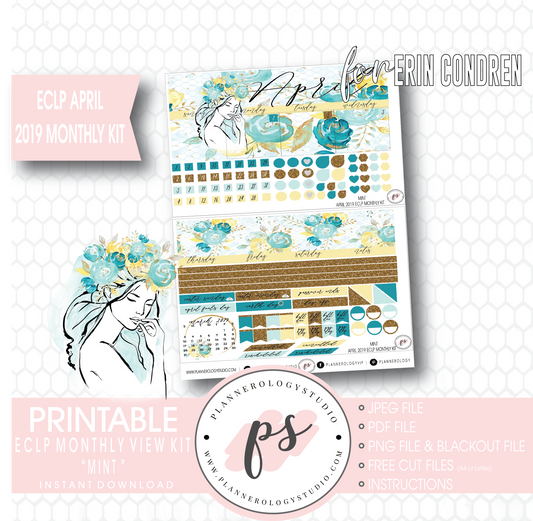 Mint April 2019 Monthly View Kit Digital Printable Planner Stickers (for Standard A5 Wide Monthly 1.6" Width Date Boxes)