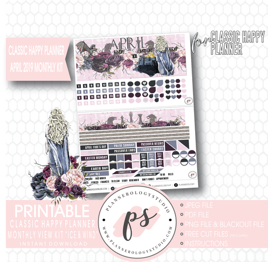 Ice & Wind (Game of Thrones) April 2019 Monthly View Kit Digital Printable Planner Stickers (for use with Classic Happy Planner)