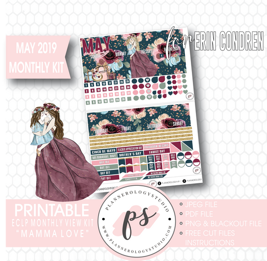Mamma Love (Mother & Daughter) May 2019 Monthly View Kit Digital Printable Planner Stickers (for Standard A5 Wide Monthly 1.6" Width Date Boxes)
