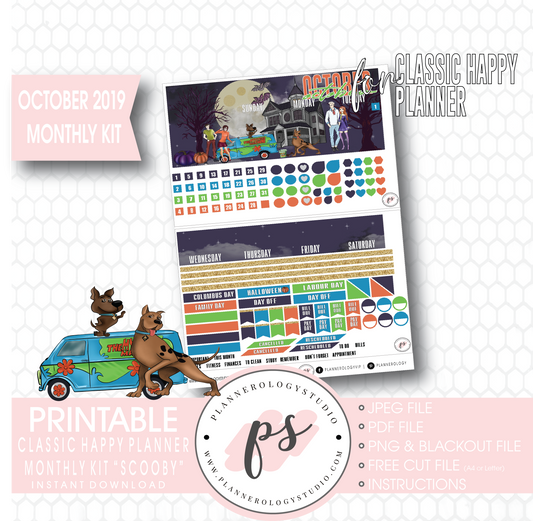 Scooby Halloween October 2019 Halloween Monthly View Kit Printable Planner Stickers (for use with Classic Happy Planner)