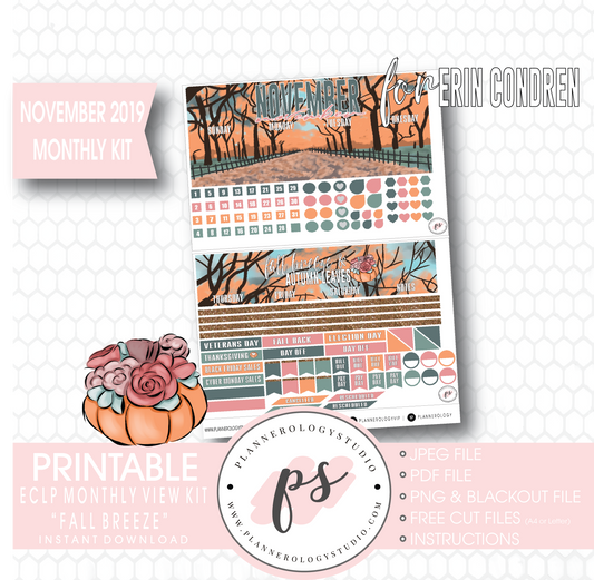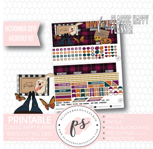 Fall Times November 2019 Monthly View Kit Digital Printable Planner Stickers (for use with Classic Happy Planner)