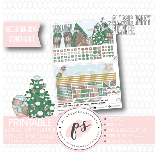 Magic Christmas December 2019 Monthly View Kit Digital Printable Planner Stickers (for use with Classic Happy Planner)