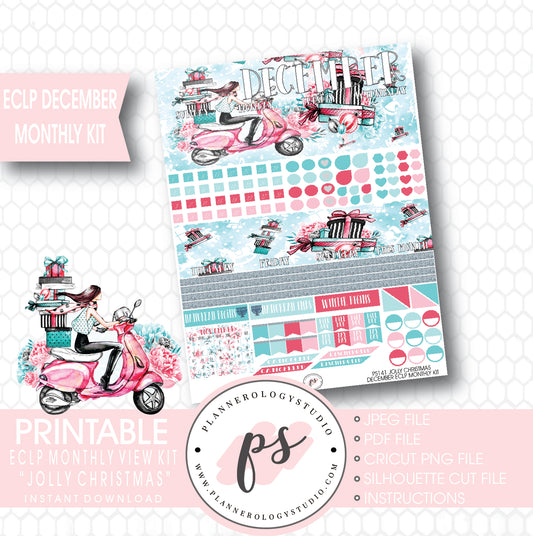 Jolly Christmas December 2017 Monthly View Kit Printable Planner Stickers (for Standard A5 Wide Monthly 1.6" Width Date Boxes)