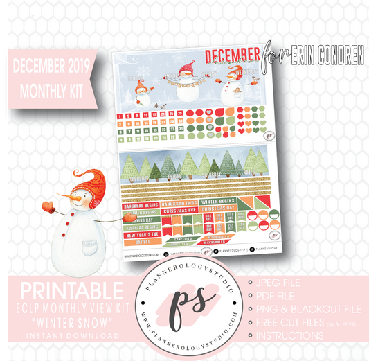 Winter Snow December 2019 Monthly View Kit Digital Printable Planner Stickers (for Standard A5 Wide Monthly 1.6" Width Date Boxes)