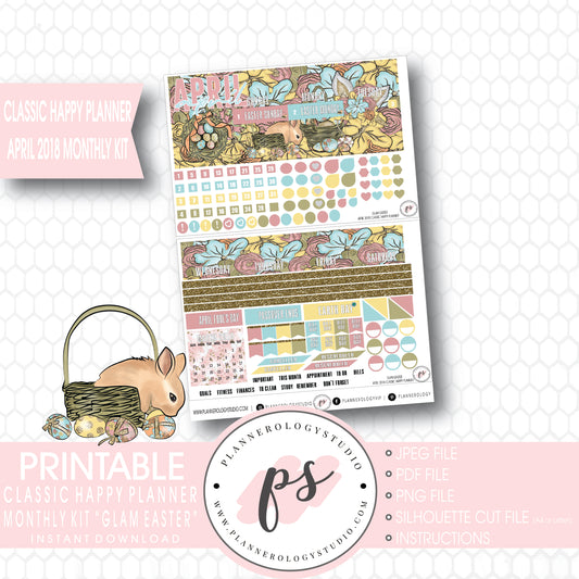 Glam Easter April 2018 Monthly View Kit Digital Printable Planner Stickers (for use with Classic Happy Planner)