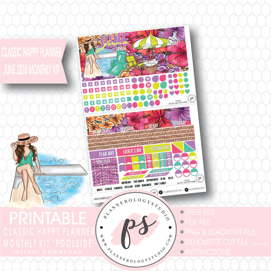 Poolside Summer June 2018 Monthly View Kit Digital Printable Planner Stickers (for use with Classic Happy Planner)