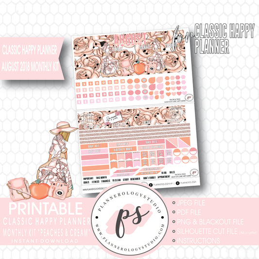 Peaches & Cream August 2018 Monthly View Kit Digital Printable Planner Stickers (for use with Classic Happy Planner)