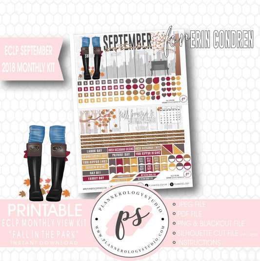 Fall in the Park September 2018 Monthly View Kit Digital Printable Planner Stickers (for Standard A5 Wide Monthly 1.6" Width Date Boxes)