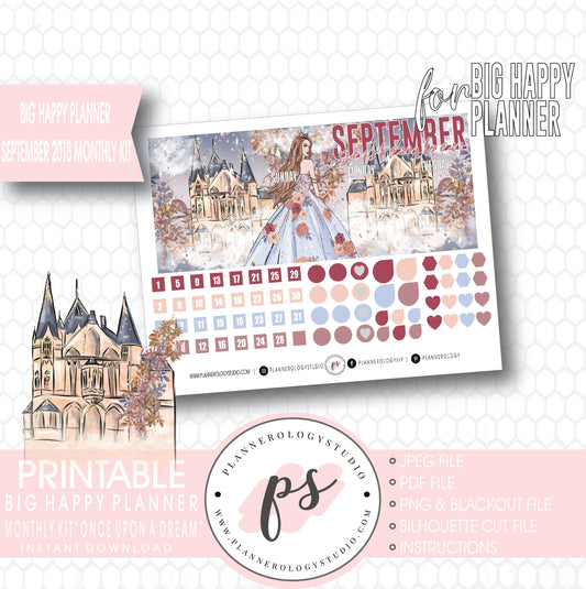 Once Upon a Dream September 2018 Monthly View Kit Digital Printable Planner Stickers (for use with Big Happy Planner)