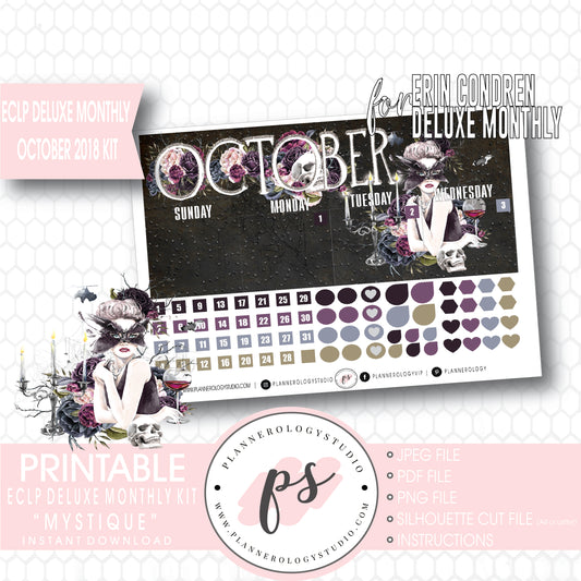 Mystique Halloween October 2018 Monthly View Kit Digital Printable Planner Stickers (for use with Erin Condren Deluxe Monthly Planner)
