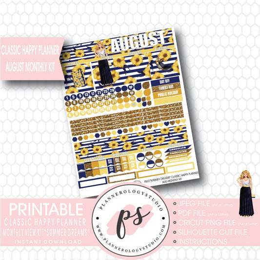 "Summer Dreams" August 2017 Monthly View Kit Printable Planner Stickers (for use with Mambi Classic Happy Planner)