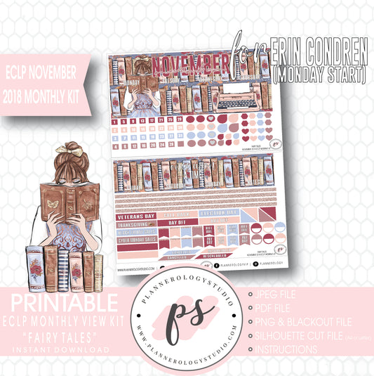 Fairy Tales November Monthly View Kit Digital Printable Planner Stickers (for Standard A5 Wide Monthly 1.6" Width Date Boxes) (Undated and Monday Start)