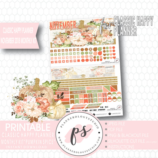 Pumpkin Spice November 2018 Monthly View Kit Digital Printable Planner Stickers (for use with Classic Happy Planner)