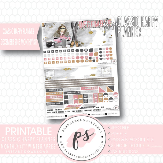 Winter Apres December 2018 Monthly View Kit Digital Printable Planner Stickers (for use with Classic Happy Planner)