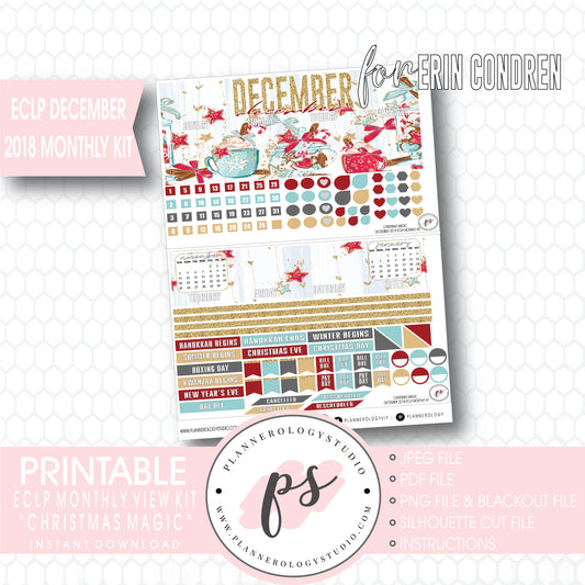 Christmas Magic December 2018 Monthly View Kit Digital Printable Planner Stickers (for Standard A5 Wide Monthly 1.6" Width Date Boxes)