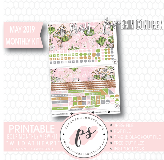 Wild at Heart May 2019 Monthly View Kit Digital Printable Planner Stickers (for Standard A5 Wide Monthly 1.6" Width Date Boxes)