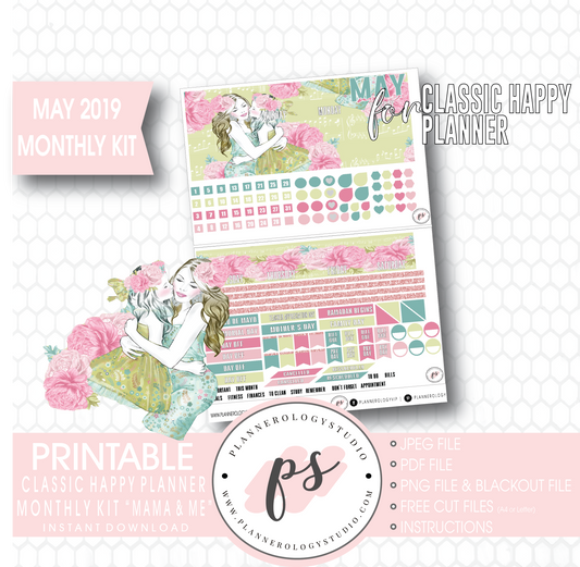 Mama & Me (Mother's Day) May 2019 Monthly View Kit Digital Printable Planner Stickers (for use with Classic Happy Planner)