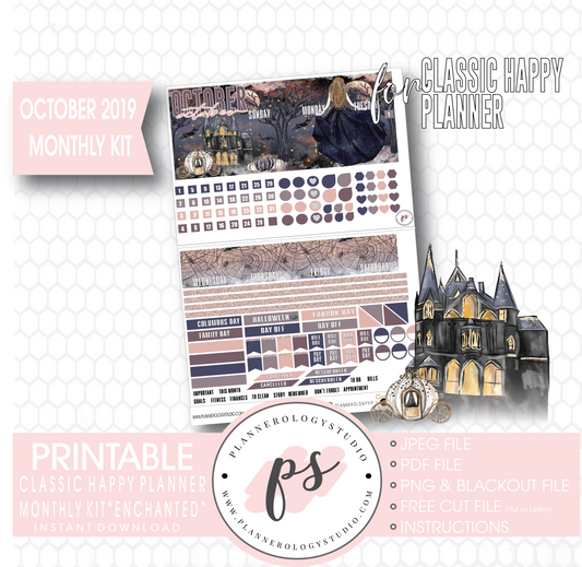Enchantment Halloween October 2019 Monthly View Kit Digital Printable Planner Stickers (for use with Classic Happy Planner)