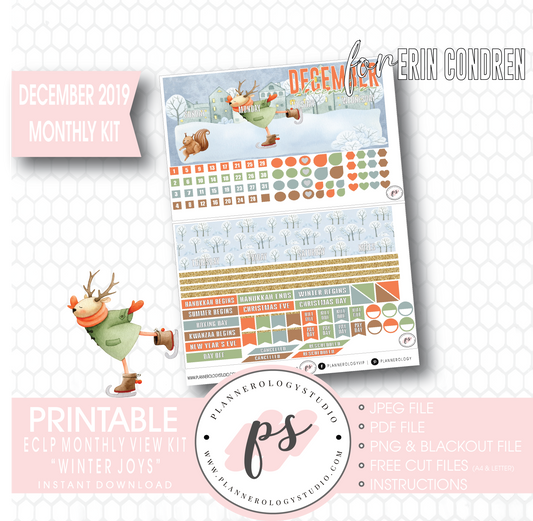 Winter Joys December 2019 Monthly View Kit Digital Printable Planner Stickers (for Standard A5 Wide Monthly 1.6" Width Date Boxes)