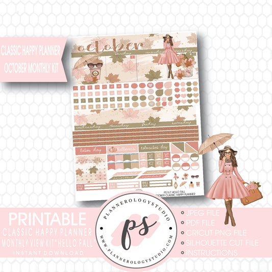 "Hello Fall" October 2017 Monthly View Kit Printable Planner Stickers (for use with Classic Happy Planner)