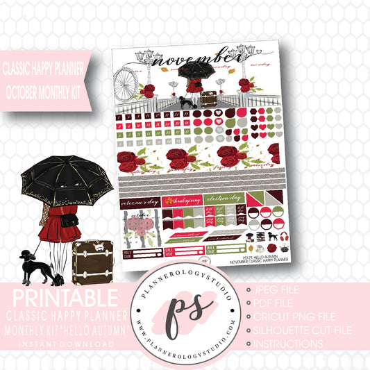 Hello Autumn (Fall) November 2017 Monthly View Kit Printable Planner Stickers (for use with Classic Happy Planner)