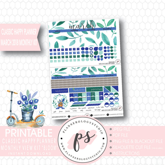 Bloom March 2018 Monthly View Kit Digital Printable Planner Stickers (for use with Classic Happy Planner)