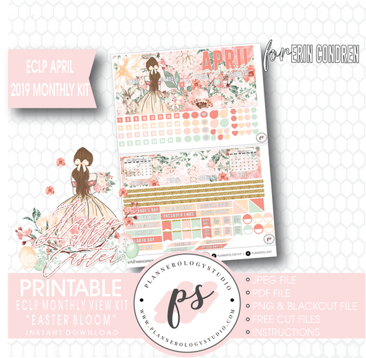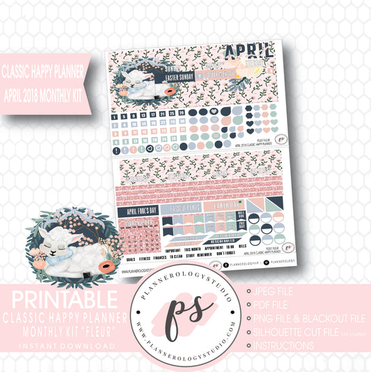 Fleur April Easter 2018 Monthly View Kit Digital Printable Planner Stickers (for use with Classic Happy Planner)
