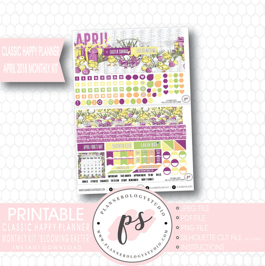 Blooming Easter April 2018 Monthly View Kit Digital Printable Planner Stickers (for use with Classic Happy Planner)