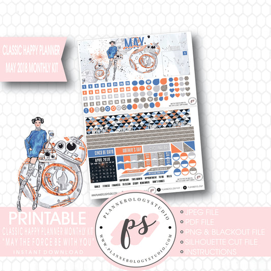 May the Force Be With You (Star Wars) May 2018 Monthly View Kit Digital Printable Planner Stickers (for use with Classic Happy Planner)