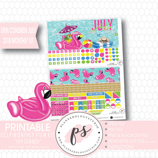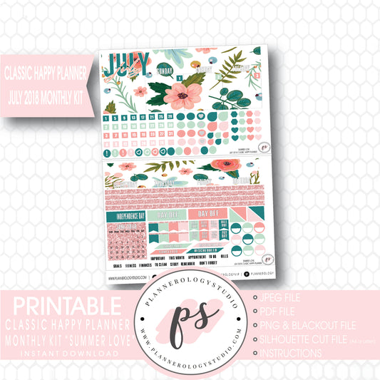 Summer Love July 2018 Monthly View Kit Digital Printable Planner Stickers (for use with Classic Happy Planner)