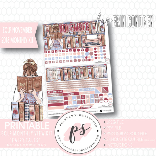 Fairy Tales November 2018 Monthly View Kit Digital Printable Planner Stickers (for Standard A5 Wide Monthly 1.6" Width Date Boxes)