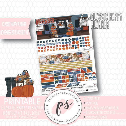 Fall Dusk November 2018 Monthly View Kit Digital Printable Planner Stickers (for use with Classic Happy Planner)