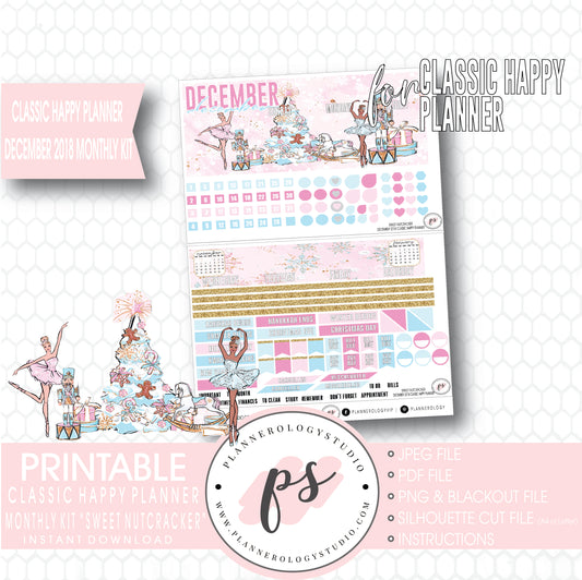 Sweet Nutcracker Christmas December 2018 Monthly View Kit Digital Printable Planner Stickers (for use with Classic Happy Planner)