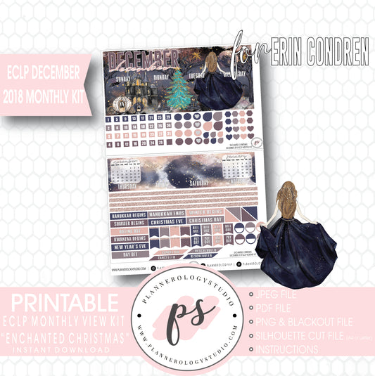 Enchanted Christmas December 2018 Monthly View Kit Digital Printable Planner Stickers (for Standard A5 Wide Monthly 1.6" Width Date Boxes)