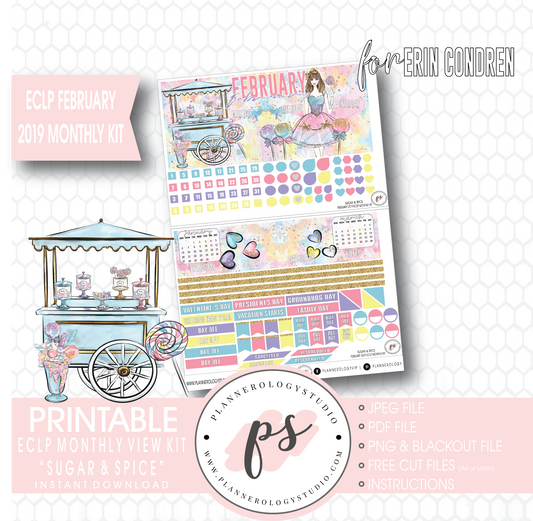 Sugar & Spice February 2019 Monthly View Kit Digital Printable Planner Stickers (for Standard A5 Wide Monthly 1.6" Width Date Boxes)