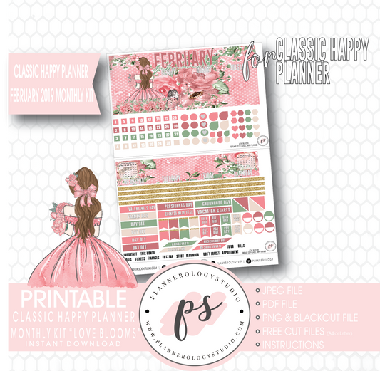 Love Blooms Valentine's Day February 2019 Monthly View Kit Digital Printable Planner Stickers (for use with Classic Happy Planner)