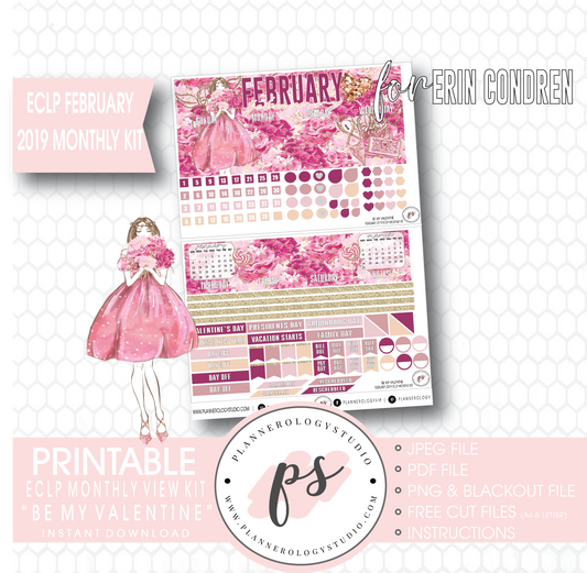 Be My Valentine February 2019 Monthly View Kit Digital Printable Planner Stickers (for Standard A5 Wide Monthly 1.6" Width Date Boxes)