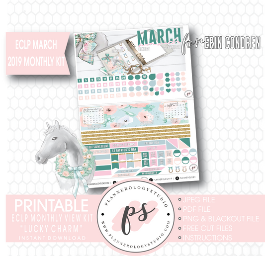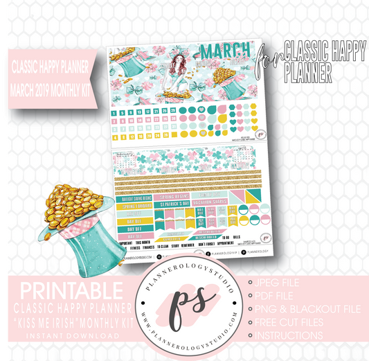 Kiss Me Irish March 2019 Monthly View Kit Digital Printable Planner Stickers (for use with Classic Happy Planner)