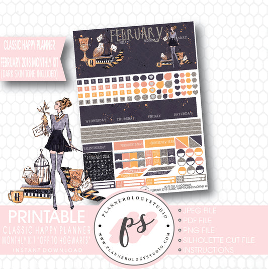 Off to Hogwarts (Harry Potter Theme) February 2018 Monthly View Kit Printable Planner Stickers (for use with Classic Happy Planner) (Dark & Light Skin Tone)