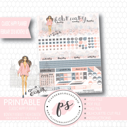 Fashionista February 2018 Monthly View Kit Digital Printable Planner Stickers (for use with Classic Happy Planner)
