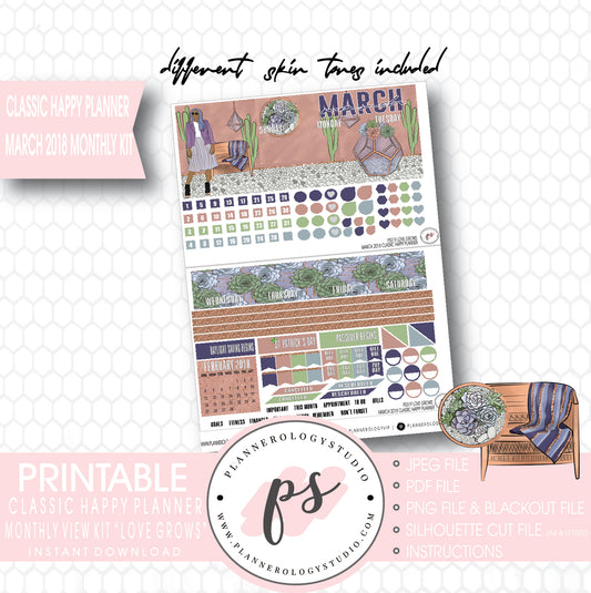 Love Grows March 2018 Monthly View Kit Digital Printable Planner Stickers (for use with Classic Happy Planner)