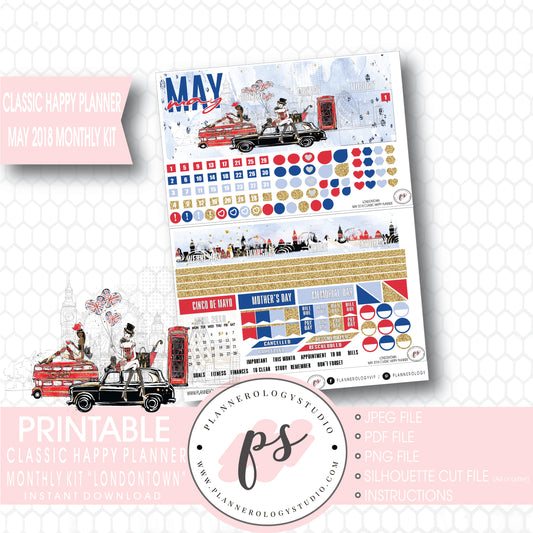 Londontown May 2018 Monthly View Kit Digital Printable Planner Stickers (for use with Classic Happy Planner)