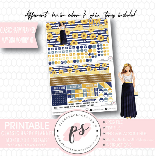 Dreams May 2018 Monthly View Kit Digital Printable Planner Stickers (for use with Classic Happy Planner)