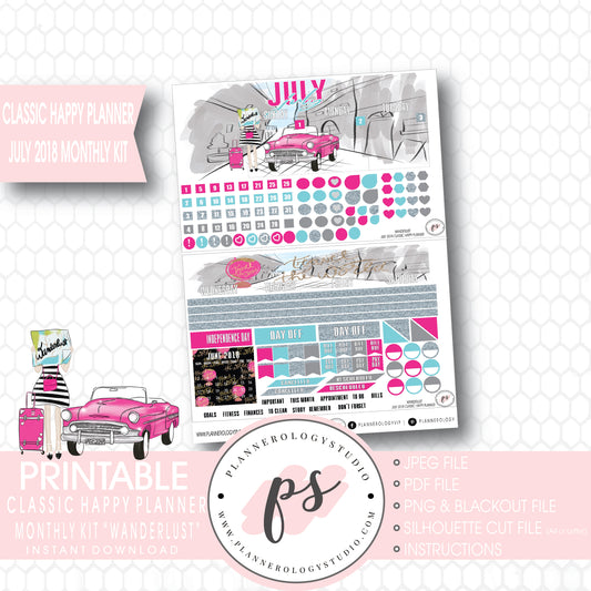 Wanderlust July 2018 Monthly View Kit Digital Printable Planner Stickers (for use with Classic Happy Planner)