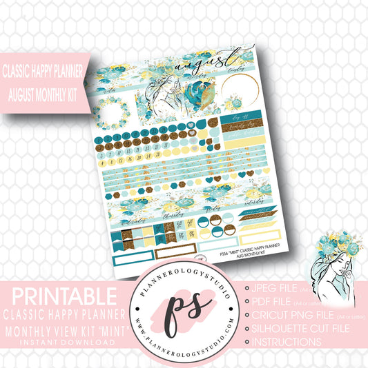 "Mint" August 2017 Monthly View Kit Printable Planner Stickers (for use with Mambi Classic Happy Planner)