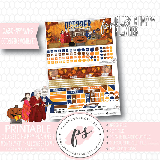 Halloweentown October 2018 Halloween Monthly View Kit Printable Planner Stickers (for use with Classic Happy Planner)